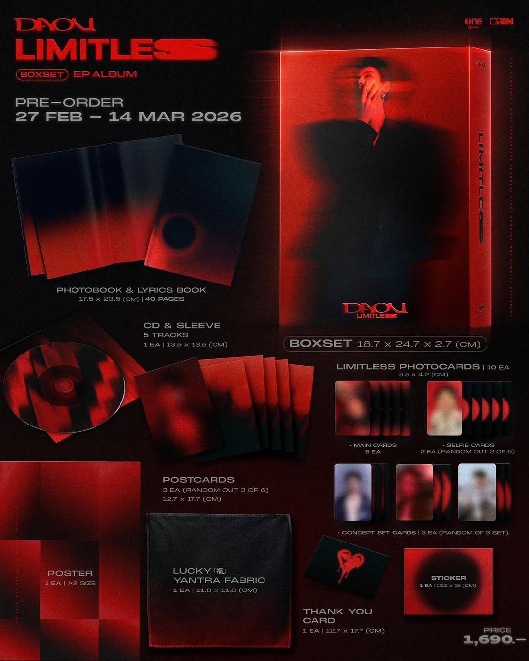 • LIMITLESS 照片卡:5.5 x 8.5 cm,共 10 張 > 5 張主卡 > 3 張概念套裝卡(隨機,共 3 套) > 2 張自拍卡(隨機,共 6 款)