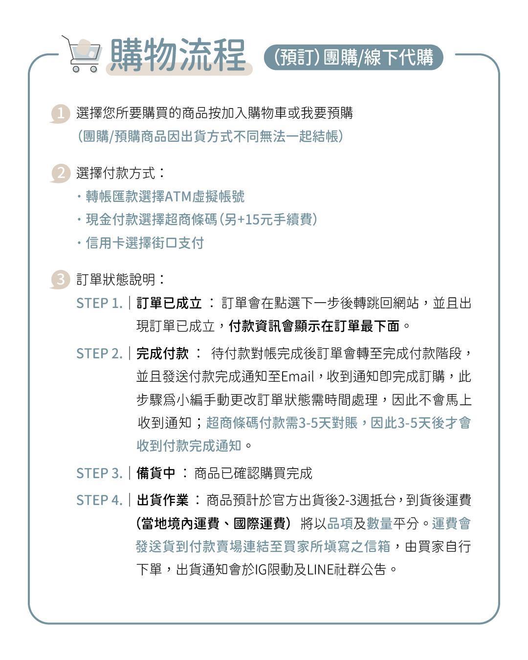 🔺請務必於團購商品結單前完成付款(不是看網站系統的繳費期限!),於團購結單後未完成付款者將自動刪單處理不會另行告知。
